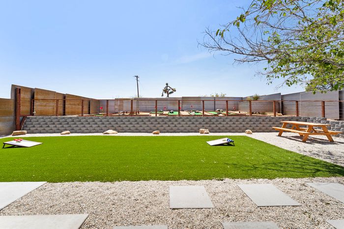 For the families that have stayed at a rental billed as autism-friendly, the difference is palpable. At AUTxcapes, a Yucca Valley vacation rental ten minutes from Joshua Tree National Park, Ellen Hunja said, “It felt like the space was literally created for my family.” In 2022, she booked a vacation there with her husband and two children, including her 4-year-old autistic son. With its three different outdoor areas contained by corrugated iron fencing and an alarm system that goes off if someone leaves, Hunja could finally relax a little. “The fully enclosed and secure property was one of the biggest draws,” she said. “It’s rare for us to be able to let our son fully run wild somewhere because he elopes. Him having the freedom to go through the house and outdoor area without having to worry was amazing.” Melina Gipson, a co-owner and the community-outreach manager of AUTxcapes, said her team was inspired to create the home because the parents of the autistic kids they worked with (all three co-owners are board-certified behavior analysts) told them that going on vacation was “almost more stressful” than staying at home.