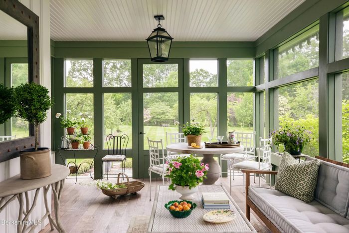 A country escape in Germantown with sage-green trim and gables galore. The farmhouse on this 3.5-acre property was built by a ship captain in the mid-1800s and has since passed through a handful of families (including a horticulturalist who worked with the New York Botanical Garden). Which is why, per its listing agent, the space had descended into “a veritable rabbit warren of incohesive additions and styles.” The current owners took it upon themselves to overhaul the interior and tie it all together, in addition to constructing a new north wing. That means a sweet kitchen with Arabescato marble countertops, a built-in breakfast nook, and a Lacanche range, which leads to a lovely dining room that looks out on the English gardens–inspired grounds (think dotted pear trees, raspberry bushes, and, yes, a dining pergola). There’s a lap pool, too, of course. A tall fireplace anchors the living room, and the new primary suite is stocked with a pair of walk-in closets plus a spacious bath with a soaking tub and shower. It’s pretty damn charming.