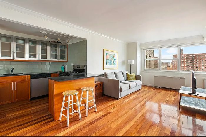 A high-floor junior one-bedroom in an elevatored Greenwich Village co-op. The unit underwent a complete renovation recently, so there are some charming details in the kitchen including glass tiling and granite countertops with a breakfast bar. The wall of windows in the living area and bedroom are all western-facing, which means you’ll get some nice afternoon glow. Gifting and pied-à-terres are allowed, and while the monthlies aren’t exactly a bargain at $1,649, you do get quite the spread of amenities: a bike room, in-building laundry, and a package room, on top of staff that includes 24-hour doormen, a concierge, and a live-in super. You’re at the crossroads of almost all the subway lines but also a quick walk from both the coveted sourdough bagels at Apollo and Campo Rosso Farms’ choice produce at the Union Square Greenmarket. Not too shabby.