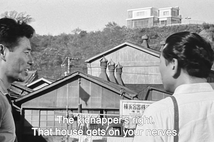 A still from the Kurosawa film shows the Gondo family is visible through their windows.
