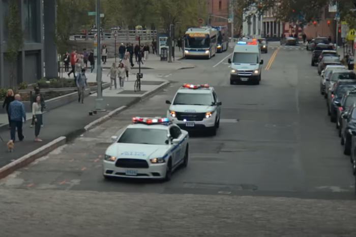 That building has huge bedrooms but very limited living areas. No disrespect to the Olympia’s very beautiful design, but we needed to get 30 cops in our space and have a grand piano in the living room. I was charged with trying to come up with a version of that apartment that could believably fit inside of the building. We also built a 200-by-30-foot LED wall that could show actual footage from the Olympia terrace. It was basically the actual view from that building, but I slightly adjusted its angle on Manhattan so that the wide side of that building is facing more of Manhattan. And we were able to have a little bit of control over what was going on so that we could speed up traffic or move boats along.