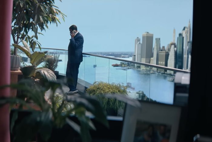 A still from the trailer shows King gazing out on a view that includes his own apartment atop the Olympia, the tall gray building that sticks out of the skyline from the foot of the Brooklyn side of the bridge.