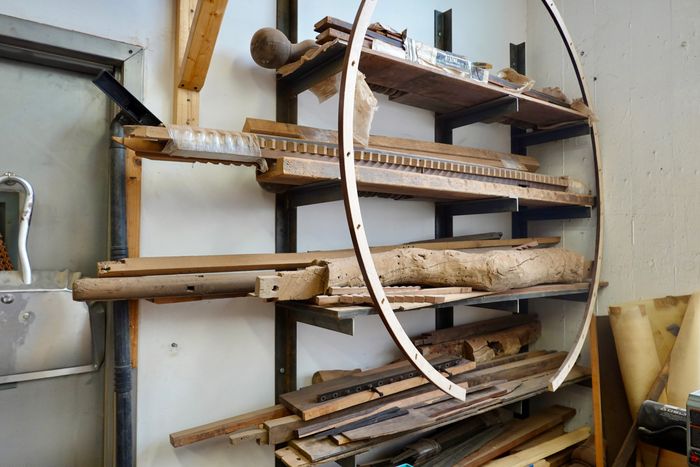 Burden is now prepping for a kind of fancy fire sale, organized with Christie’s. It’s pushing the auction house into a new format: Instead of showing the pieces at Christie’s headquarters at Rockefeller Plaza, the furniture will stay in situ in the warehouse, giving bidders two weeks to test the comfort of Chinese root chairs or stroll into the usually secret workroom where Burden restores pieces, whose walls display a lifetime collection of antique wood scraps and tools that resemble torture devices. It’s a space that feels “Instagrammable to the nth degree,” says Christie’s vice-president of communications, Edward Lewine, who is walking me through the warehouse along with Burden and Elizabeth Seigel, a vice-president of private and iconic collections at Christie’s, who has another lure for the shoppers coming through: One-third of the items on auction will have no reserve price, so a charming pair of French chairs with cutouts of spades and hearts may sell for the opening bid of $100. “The prices realistically are cheaper than going to Restoration Hardware,” Seigel says.