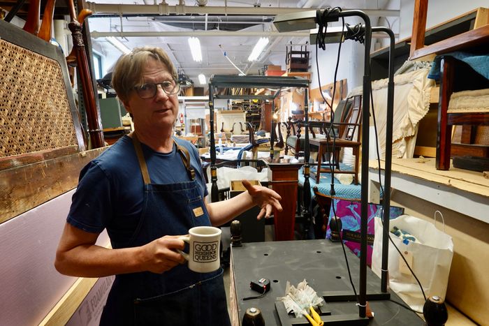 The arrival of antique-resale sites shifted how he made picks. He couldn’t lower prices to match dealers who didn’t pay rent in Manhattan, so he pivoted to pieces that had no competition: a unique 2,500-piece Bernini chandelier so big that it had to be set up with scaffolding. It sold “somehow,” he said. But it didn’t justify the rent when even pro decorators stopped coming by. “They made more money sitting at their desks than going around in a taxi looking at things,” Burden says. “I felt very sort of let down and lost.” A slew of museums and auction houses had warehouses in Long Island City, so in 2016 he followed them out there and tried to pivot to online sales, cutting down his staff from seven at its peak to what it is now: a full-time restorer and a part-time assistant.
