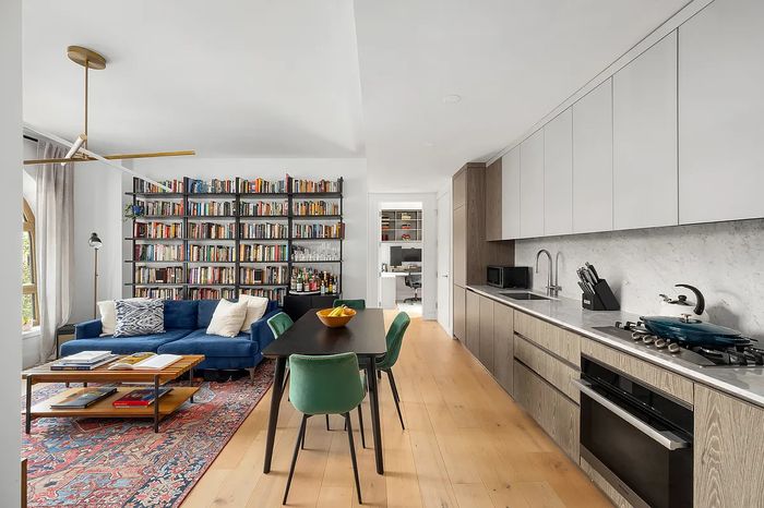 A one-bedroom condo in Gowanus with a focus on details. There are custom arched windows in the living room and bedroom — dramatic and plenty of sky to take in. There are white oak floors throughout, and in the kitchen, Italian custom cabinetry along with Carrara marble countertops and backsplashes. The bathroom walls also have a marble situation going on (fluted, dark), and on the other side of the apartment, there’s a bonus office space that’s petite but has a well-placed window. The monthlies are $1,686, which might feel high given the Superfund of it all, but there’s an amenities spread to match: a part-time and virtual doorman, a lobby lounge, a rooftop terrace with views of the harbor and Manhattan, a fitness center, a party room with a landscaped outdoor terrace, a game room, a children’s playroom, a pet spa, and bicycle storage. Also, you’re right around the corner from the 4th Avenue–9th Street Station for the R and F/G lines, and the Dram Shop is down the street for reliable happy-hour specials.