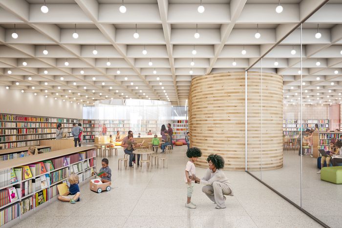 The 65-year-old Grand Concourse Library in the Bronx is about to be replaced. First renderings of the new public library show a brick-lattice façade on the first two floors and a double-height reading space that looks airy and bright. But perhaps the most unusual feature of the library is not what’s inside but what’s on top of the stacks: 113 affordable, rent-stabilized units. The project is part of HPD’s Living Libraries program within the City of Yes for Families initiative, which aims to make better use of city-owned lots by combining library renovations with new affordable housing. It joins four others — the Inwood and Sunset Park libraries, which are done, and the New Utrecht library in Bensonhurst and the Bloomingdale Library in the Upper West Side that are just beginning the redevelopment process. The concept isn’t unique to New York — there are examples in Chicago and Boston — but it finally seems to be picking up steam here.