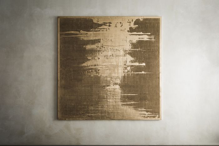 French artisan and artist Pierre Bonnefille uses various craft techniques on materials like copper, pigment, and wood to experiment with surfaces and finishes. His painterly instincts were very much on display at New York’s Les Atelier Courbet booth, where he presented Bronze Painting 229. The large wall-piece demonstrates the range of effects liquid metal can have on a flat surface — in this case, a mesh base structure — as the material changed from its dripping and rippled state before solidifying and becoming glossy.