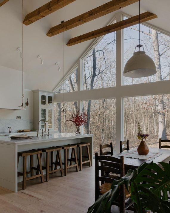 The kitchen featured in this Germantown listing photo is the draw, with a huge A-frame floor-to-ceiling window.