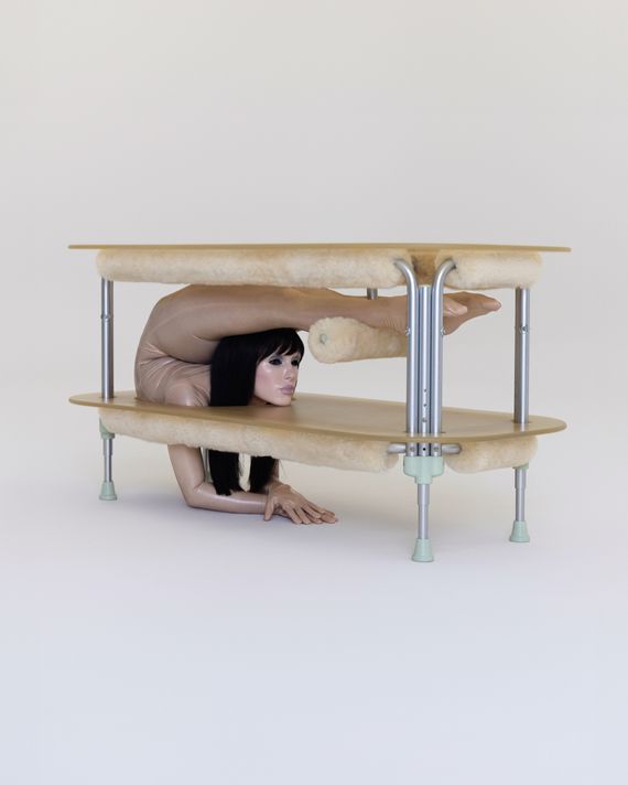 Bianca Censori, designer and wife of Kanye West, made some furniture. The collection of tables and chairs is part of Bio Pop, a performance-art piece that just debuted in Seoul. The pieces represent “a self-portrait in constraint,” which is made very literal by the staging: Censori and a group of models made to look like her are wearing latex bodysuits designed by Shigenari Kido and positioned inside each piece in restrictive postures. The furniture appears to be made of crutches (or is heavily inspired by crutches?). “Positions learned in private are worn in public,” Censori writes of the series. Okay? She continues, “Domesticity is the mother of all revolutions, because all others trace back to it.” Okay.
