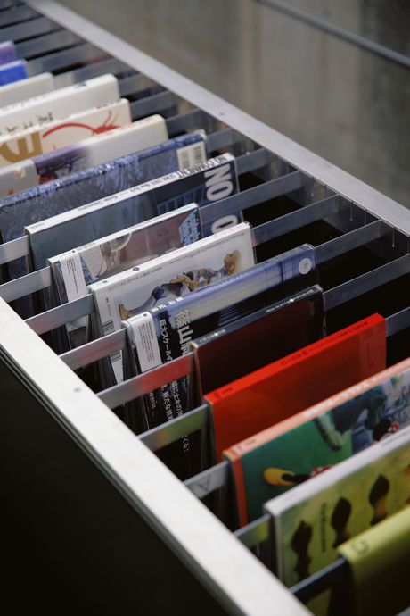 The Bowery store of Japanese streetwear brand Vowels may look like other downtown menswear boutiques — spare, industrial, with minimalist displays and raw concrete everywhere. However, in the back of the shop, the company has installed something a little less expected than a barbershop or listening lounge; it’s a library stationed in a hallway. But the books and magazines are not organized on shelves or displayed, covers out, like lifestyle props; instead, they’re hung like laundry inside a custom 60-foot-long display case. For the most part, the resource library is centered on Japanese ephemera, more focused on design than fashion — there are books on typography, photography, textiles, and ceramics along with architecture magazines, museum-exhibition catalogues, and advertising manuals. All of it is from the personal collection of creative director Yuki Yagi and curated by Vowels’s in-house archivist, Bergen Hendrickson (how many stores can say they have one!). There are hard-to-find back issues of Japanese magazines like Studio Voice, Brutus, and Olive and some photography monthlies dating back as far as the 1920s. Hendrickson says some of the rarer items that draw people in are books by Daido Moriyama and Nobuyoshi Araki. The library is available by appointment, and given that the collection on display rotates roughly every six weeks (often timed with related events or seasonal launches), there are plenty of reasons to come back and visit. A scanner is available as well, and a colorful velvet-padded stadium-seating lounge in the back provides plenty of room to linger over first editions with complimentary La Cabra coffee and tea from the store’s café. Vowels, 76 Bowery